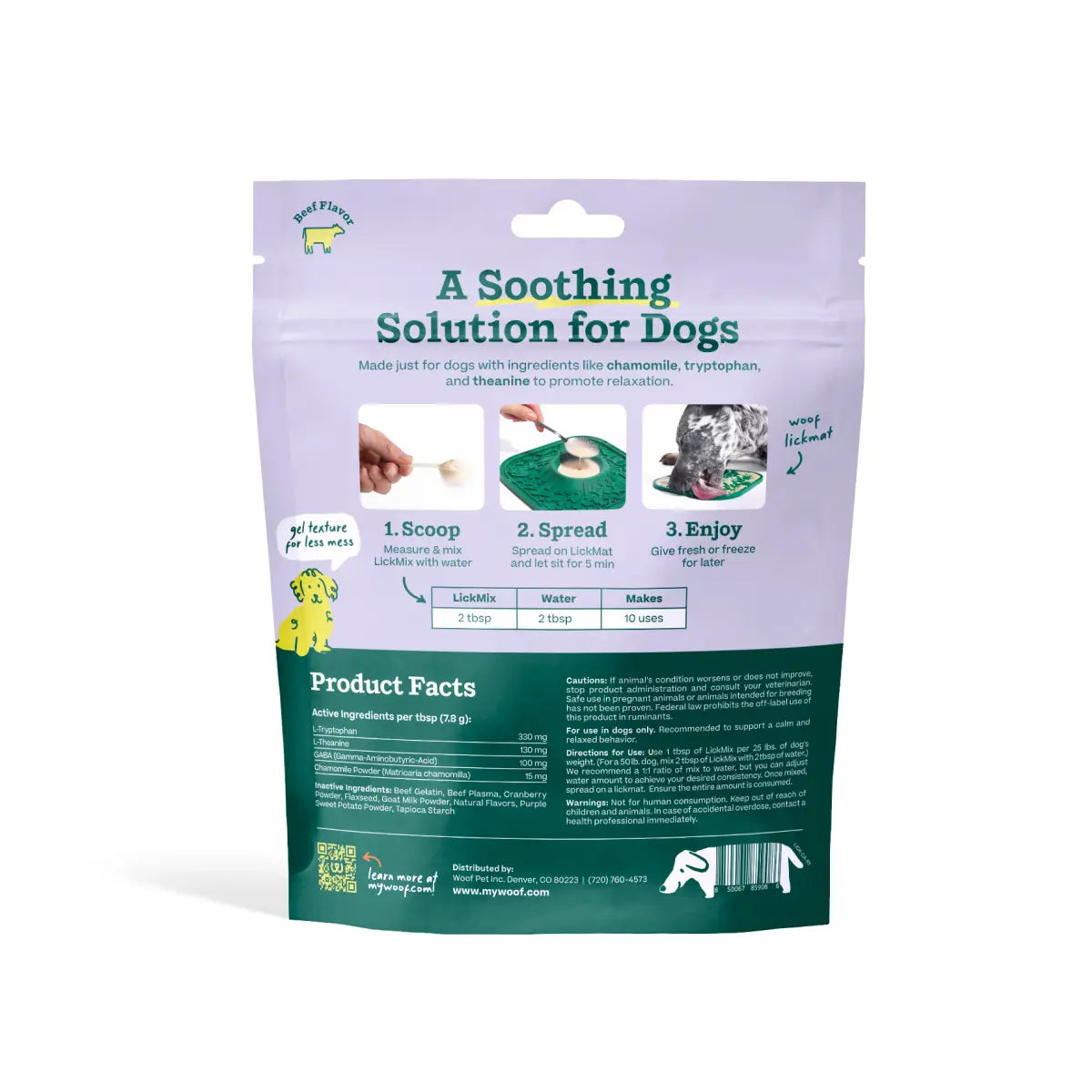 Simply mix the powder in the LickMat's central mixing bowl, spread the mixture on the mat, and in 10-15 minutes you'll have a delicious distraction for your dog.